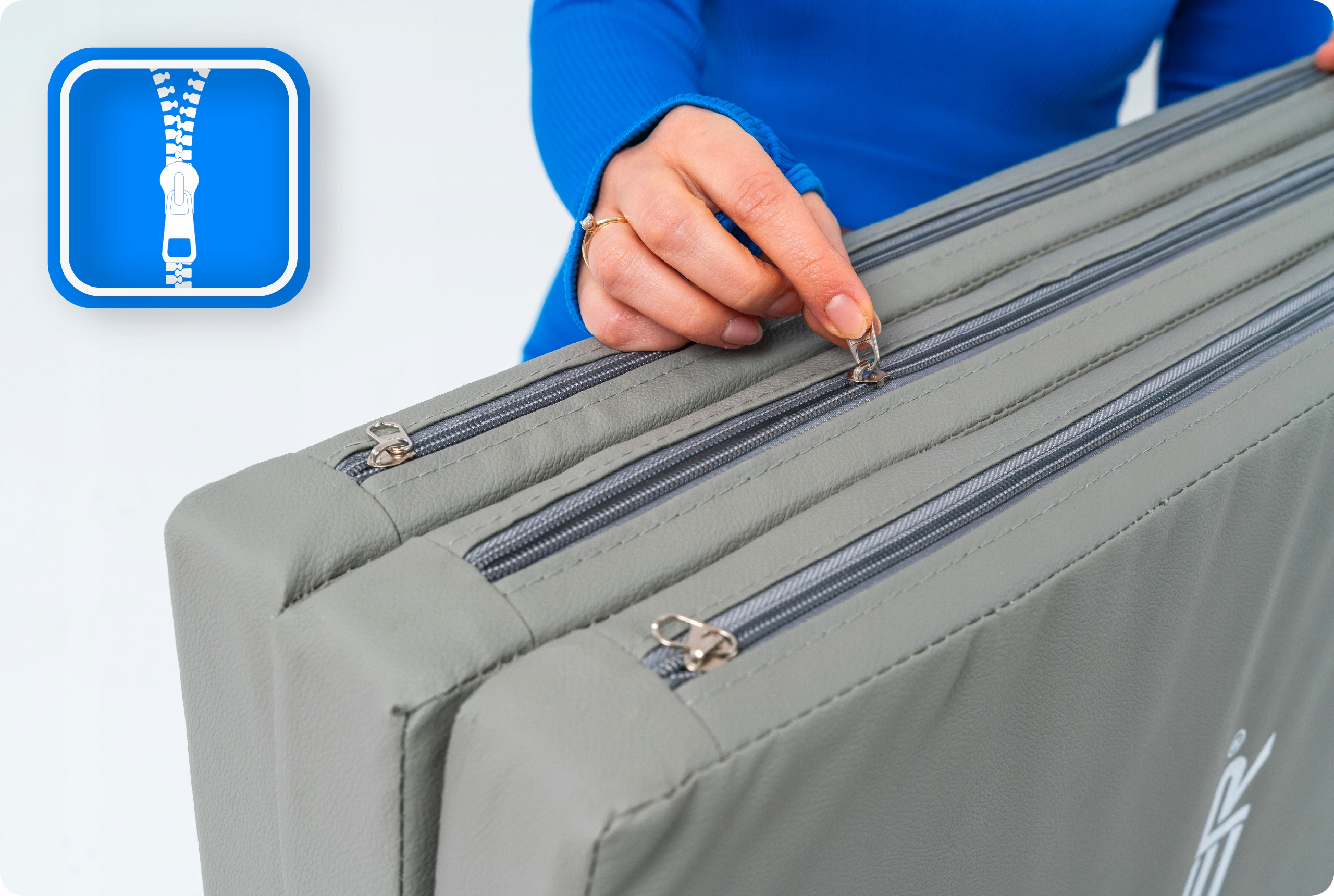 Zadrga omogoča zamenjavo samo prevleke v primeru poškodbe, kar podaljša življenjsko dobo blazine.