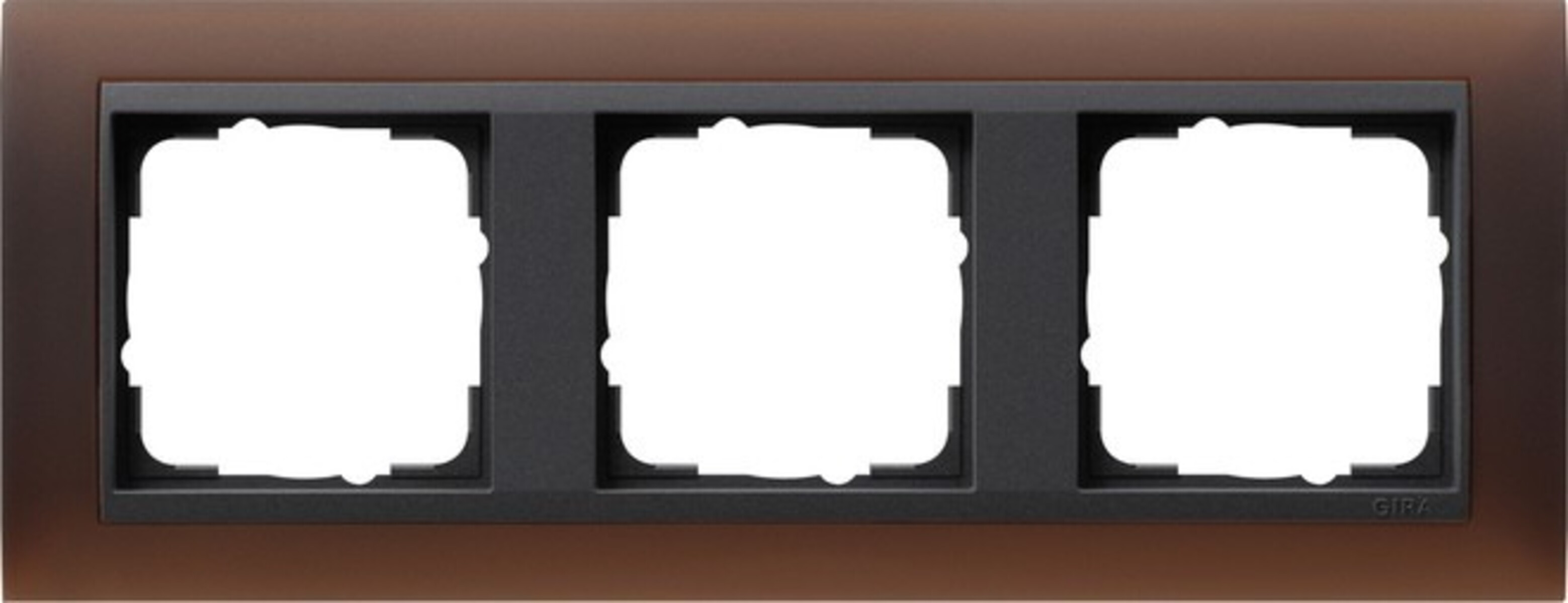 pritrditev s sponkoGira okvir pokrova 3f. opak dbr 021313: podrobnejši podatkiKrovni okvir Gira Event neprozorna temno rjava z vmesnim okvirjem antracit 3gang Lastnosti: Zaščita pred razbitjem. EAN: 4010337003113