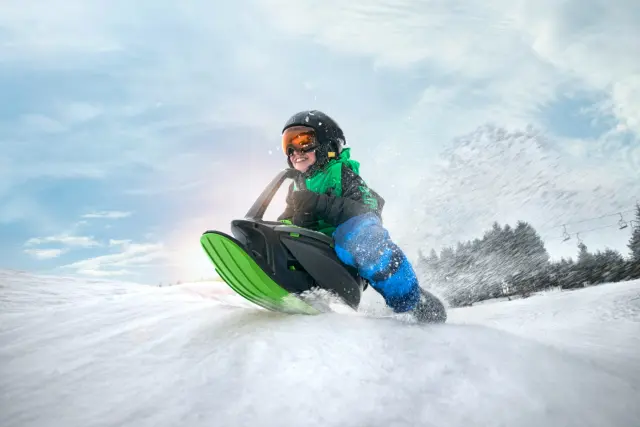 ZAČETNIK - Primerno za mlajše nadobudneže. Sedež se spremeni v eno uporabno smučko za boljšo stabilizacijo in udobnejšo vožnjo.