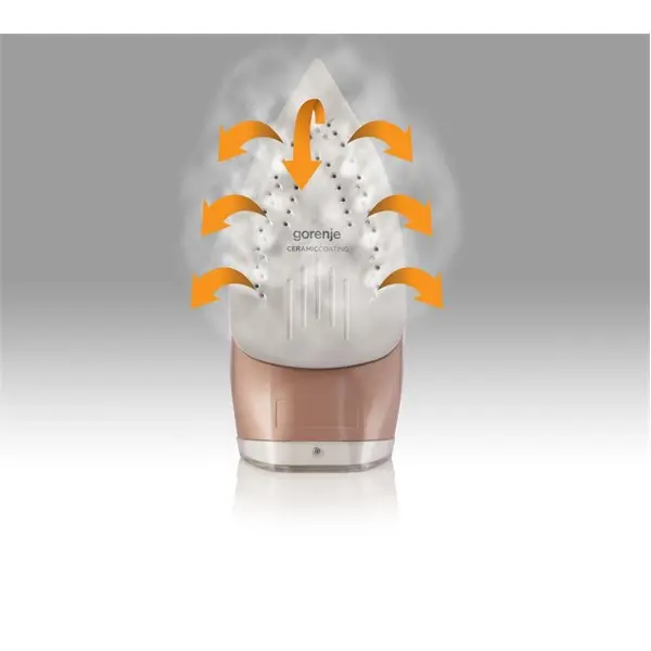 Tristopenjsko stikalo, Proti nalaganju vodnemu kamnu / samočiščenje, Proti kapljanju, Samodejni izklop, Indikator nizke ravni vode, Lučka za pripravljenost, Funkcija pršenja meglice, Vrtljiv kabel, Pokončno parjenje