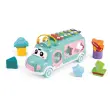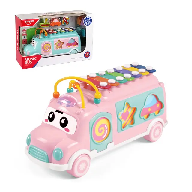 Glasbeni avtubus nudi mnogo zabave. Velikost 35 x 10,2 x 19,8 cm Na strehi avtobusa so zvončki na katere lahko zaigramo čisto pravo melodijo. Ob strani so različni liki katere otroci spoznavajo in jih postavljajo na ustrezno mesto. Primerno za otroke od 18 mesecev dalje.