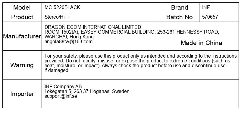 Podatki o proizvajalcu vključujejo informacije (naziv, naslov, državo in elektronski naslov) povezane s proizvajalcem izdelka.