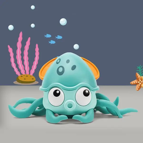 Čas kopanja spremenite v razburljivo doživetje. Navijte hobotnico v smeri urinega kazalca in jo spustite v vodo. Opazujte, kako se njene vijugaste noge samodejno premikajo in veslajo naprej z zabavo in navdušenjem.