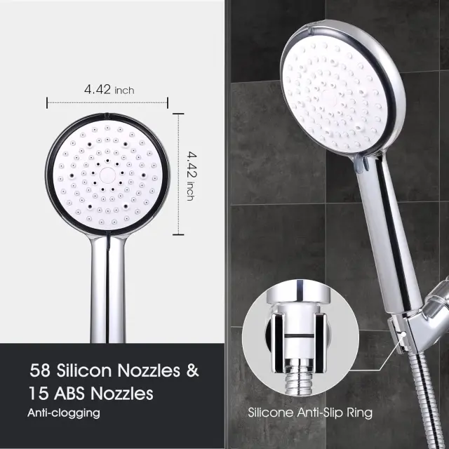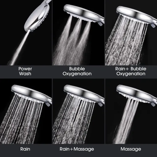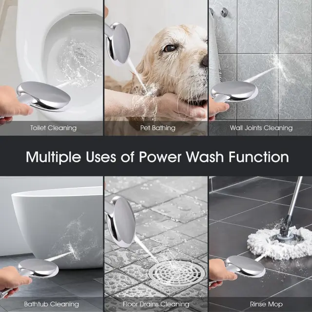 Glava in cev za prho, visokotlačne glave za prho s 6 razpršilnimi masažnimi načini, vgrajeno Power Wash za čiščenje kadi, stranišča, ploščic in hišnih