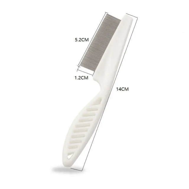 Učinkovito odstranjevanje dlake: Ta glavnik učinkovito odstrani odpadno dlako, zaplete in vozle iz dlake vašega ljubljenčka, zaradi česar je čista in zdrava. Njegova zasnova z drobnimi zobmi seže globoko v podlanko, ne da bi pri tem opraskala kože. Udobna in varna zasnova: Ta glavnik je izdelan z zaobljenimi zobmi in zagotavlja udobno nego za vašega kosmatega prijatelja. Nežno odstrani zaplete in vozle, ne da bi pri tem vlekel ali cukal, zato je primeren tudi za občutljive hišne ljubljenčke. Vsestranska uporaba in enostavno čiščenje: Ta glavnik je primeren tako za mačke kot pse z različnimi dolžinami dlake in je vsestranski pripomoček za nego. Po uporabi ga preprosto sperite z vodo ali obrišite do čistega, da ga boste lahko enostavno vzdrževali.     Specifikacije: Velikost: Dolžina: 14 cm, širina: 2,2 cm, višina: 1 cm Material: PP+nerjaveče jeklo   Paket vsebuje: Glavnik x1