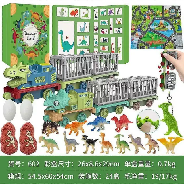 Glinena identifikacijska kartica dinozavra, slepa škatla, avtomobilček klikni in igraj, odštevalni koledar s teleskopsko cevjo Triceratops