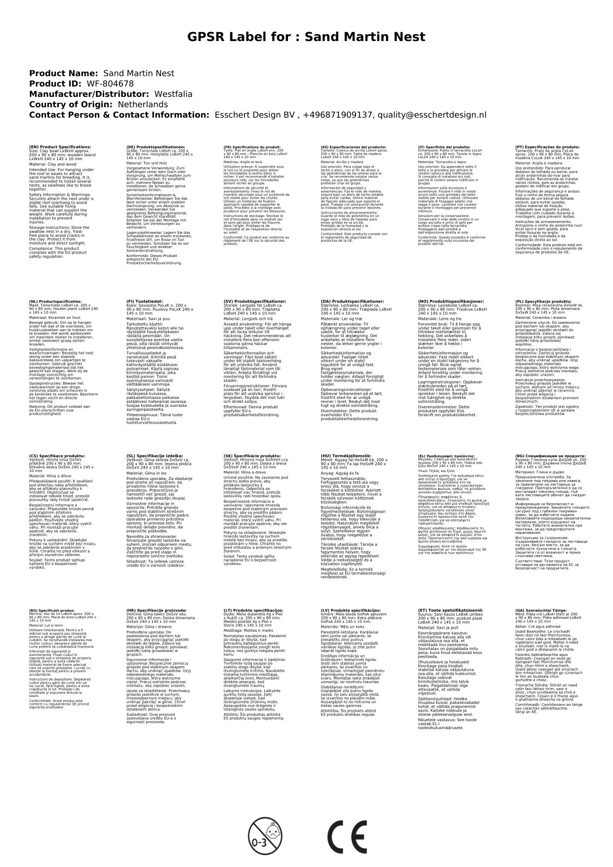 To posebno gnezdo za lastovke je zasnovano za enostavno namestitev neposredno pod streho ali napuščem. Izdelano je iz kakovostne gline, ki zagotavlja naravno okolje za brstenje, medtem ko lesena plošča omogoča varno pritrditev.