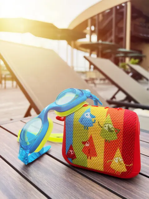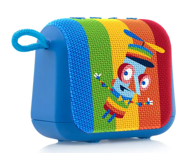 Vsi otroci se bodo razveselili prenosnega zvočnika! Pa ne le zaradi barvne zasnove z liki. Svojim otrokom lahko predvajate najljubše pesmi in zvočne pravljice od kjer koli. Zahvaljujoč stopnji zaščite IPX6 ga lahko uporabljate tudi v kopalnici ali ob bazenu.
