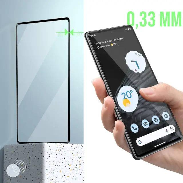 Ta folija za zaslon Google Pixel 7 s crnim obrisom je izdelana iz prozornega in odpornega kaljenega stekla. Folija z indeksom trdote 9H, ki absorbira udarce in praske. Njegov oleofobni premaz proti prstnim odtisom nudi udobje pri uporabi.