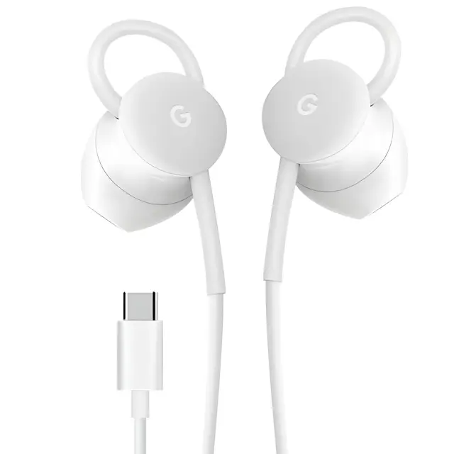 Google, Slušalke USB C z nadzorom glasnosti Originalni mikrofon za pomoč pri glasu, Bela