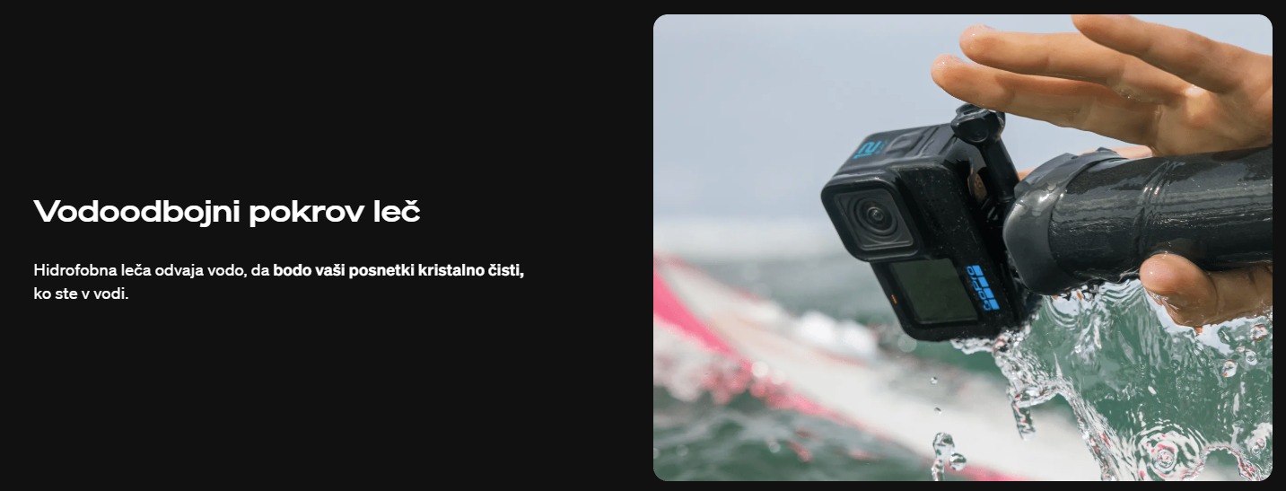 Na voljo so tudi profesionalne funkcije, kot je brezžična sinhronizacija več HERO12 prek časovne kode, napredne barvne kontrole in drugo. HERO12 vse to zavije v GoProjev legendarni vodoodporen, izjemno robusten dizajn, da zagotovite, da boste dobili posnetek, ne glede na okolje.