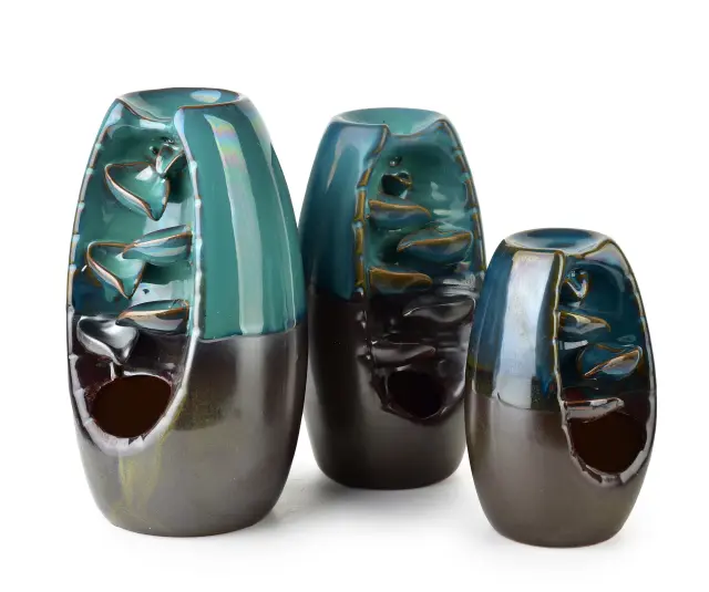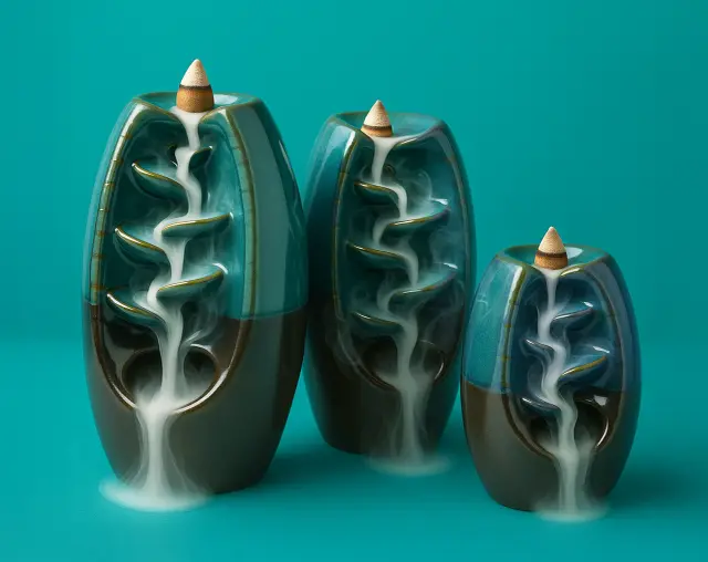 Keramični backflow gorilnik za kadila MONDEX (since 1986) je eleganten dekorativni dodatek, ki združuje aromaterapijo in poseben vizualni učinek padajočega dima. Zaradi zasnove za backflow stožčasta kadila se dim ne dviguje navzgor, temveč se kaskadno spušča po kanalih gorilnika in ustvarja učinek megličastega slapa. Primeren je za ustvarjanje umirjenega vzdušja pri sprostitvi, meditaciji, jogi ali večernih ritualih.
