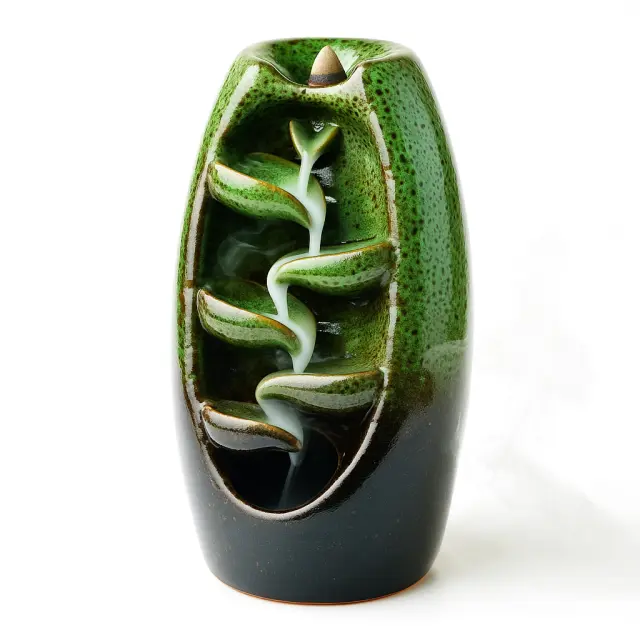 Keramični gorilnik za kadilo MONDEX Backflow je dekorativen dodatek za dom, ki združuje aromaterapijo z izjemnim vizualnim učinkom. Zaradi posebne backflow zasnove se dim iz stožca ne dviga navzgor, temveč se kot kaskada nežno spušča navzdol po oblikovanih kanalih in ustvari učinek slapa. Tak ambient je idealen za sprostitev, meditacijo, jogo ali miren večerni ritual.