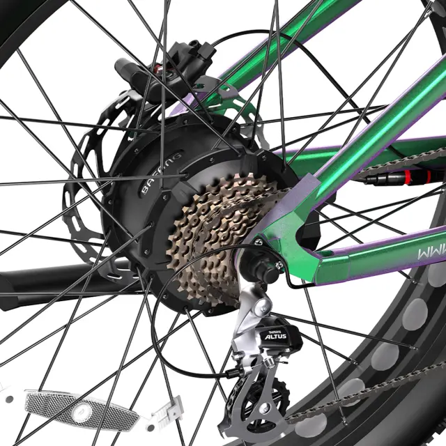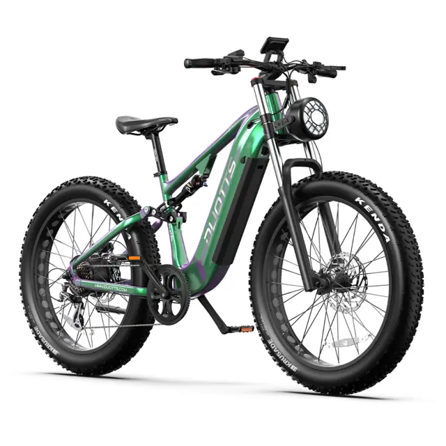 E26, opremljen s pnevmatikami 26 x 4,0 palcev, ponuja odličen oprijem in stabilnost na razgibanih površinah, zaradi česar je idealen za različne cestne razmere, od mestnih ulic do grobih poti.