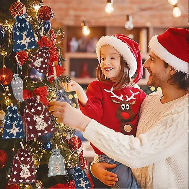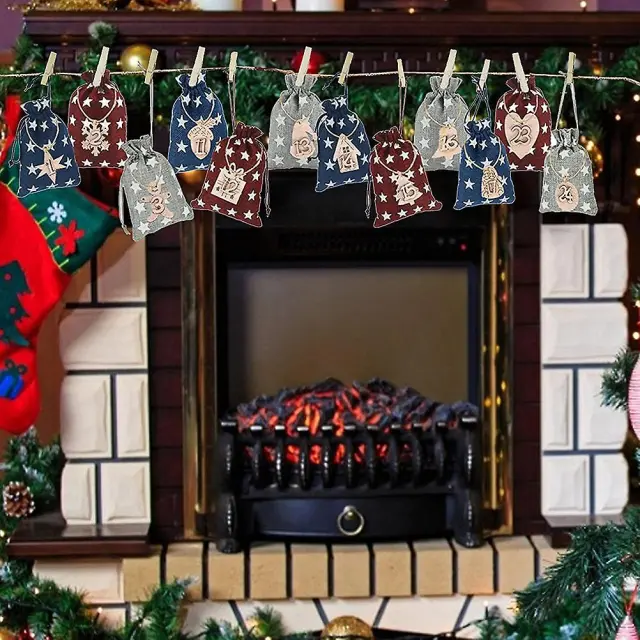 GPB Adventni koledar Darilne vrečke DIY Odštevalni koledar Božične vrečke z vrvico 24-dnevne viseče darilne vrečke za božične okraske Lesena