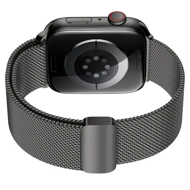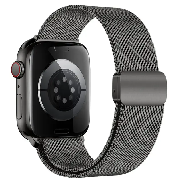 Varno magnetno zapiranje: Ta milanski pašček za uro ima močno, dvojno magnetno zaponko, ki zagotavlja, da vaša ura Apple Watch ostane varno na vašem zapestju, tudi med intenzivnimi aktivnostmi. Izboljšane varilne točke zagotavljajo dodatno vzdržljivost in preprečujejo lomljenje.