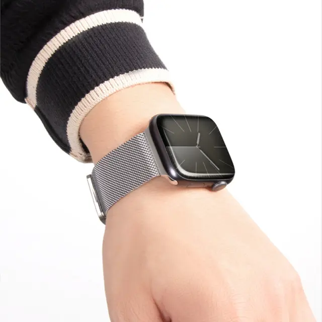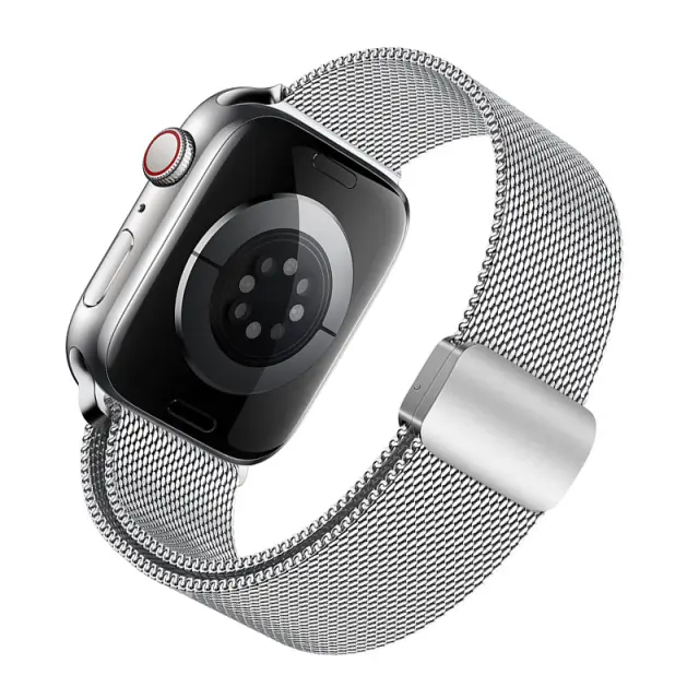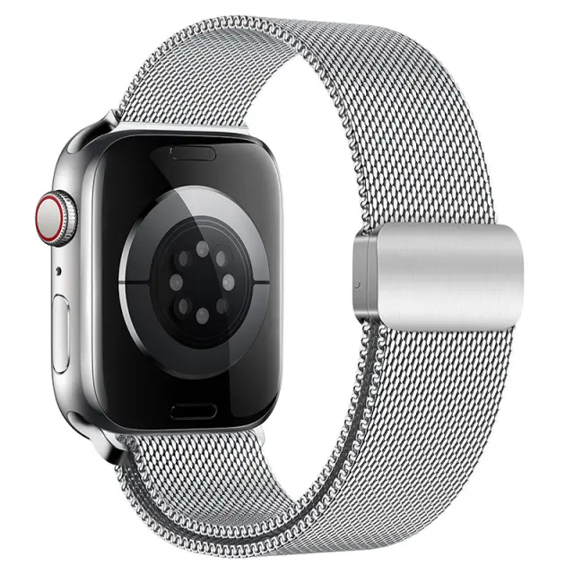 Varno magnetno zapiranje: Ta milanski pašček za uro ima močno, dvojno magnetno zaponko, ki zagotavlja, da vaša ura Apple Watch ostane varno na vašem zapestju, tudi med intenzivnimi aktivnostmi. Izboljšane varilne točke zagotavljajo dodatno vzdržljivost in preprečujejo lomljenje.