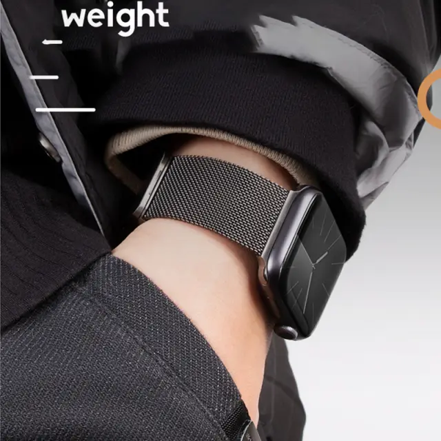 Varno magnetno zapiranje: Ta milanski pašček za uro ima močno, dvojno magnetno zaponko, ki zagotavlja, da vaša ura Apple Watch ostane varno na vašem zapestju, tudi med intenzivnimi aktivnostmi. Izboljšane varilne točke zagotavljajo dodatno vzdržljivost in preprečujejo lomljenje.