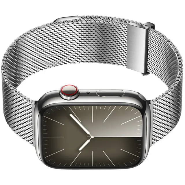 Elegantna milanska zasnova: Ta trak, izdelan iz vrhunskega nerjavečega jekla, se ponaša z brezčasno milansko zasnovo zanke, ki izžareva prefinjenost in dopolnjuje vsak slog. Gladka, zračna mreža se udobno namesti na vaše zapestje za celodnevno nošenje.