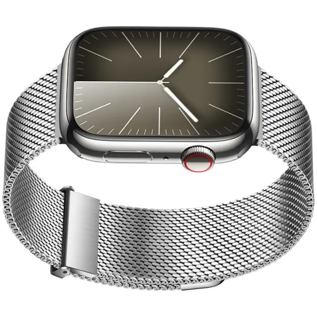 Elegantna milanska zasnova: Ta trak, izdelan iz vrhunskega nerjavečega jekla, se ponaša z brezčasno milansko zasnovo zanke, ki izžareva prefinjenost in dopolnjuje vsak slog. Gladka, zračna mreža se udobno namesti na vaše zapestje za celodnevno nošenje.
