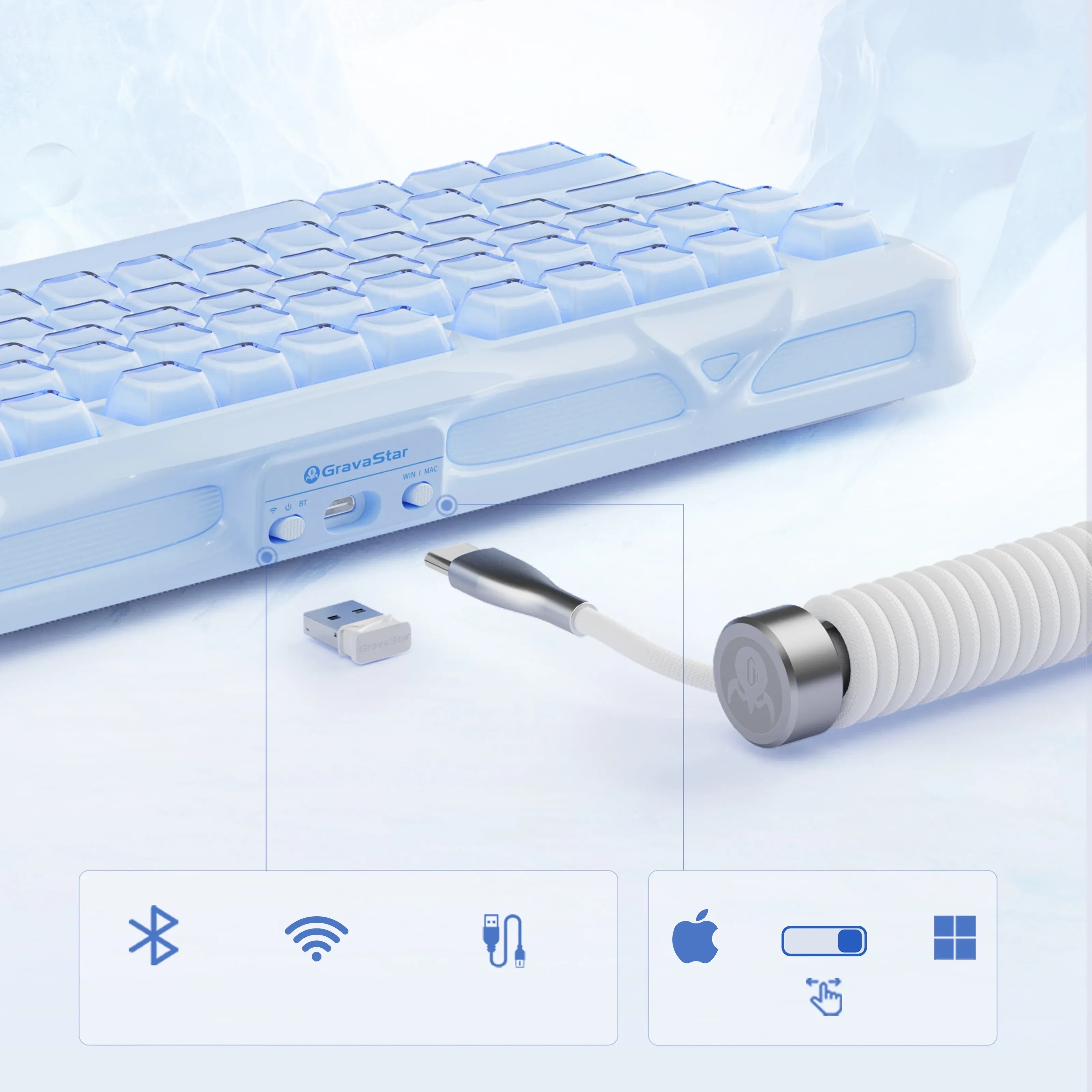 Vsebuje linearna stikala tipa GravaStar x Kailh Cherry Pink za stabilno in odzivno delovanje. Majhna aktivacijska sila z močno povratno informacijo - idealna stikala za igranje iger in tipkanje brez nihanja tipk ali občutka dviga tipk.