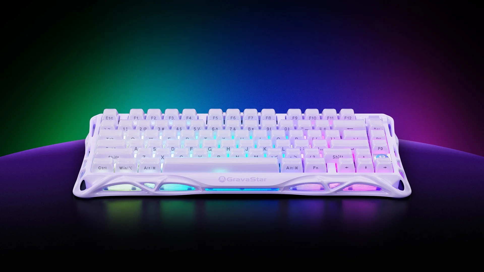 Sistem osvetlitve RGB v napravi GravaStar V75 ponuja 16 dinamičnih načinov in dvoobmočno upravljanje - tipke in ambientalne stranske luči so sinhronizirane za popoln vizualni učinek. Prilagodite odtenek, nasičenost, svetlost, hitrost učinka ali spremenite načine in ustvarite svoj edinstven videz. Idealno za igranje iger s pulzirajočimi učinki ali tipkanje z mehko ambientalno svetlobo - vsako funkcijo lahko popolnoma prilagodite brez omejitev.