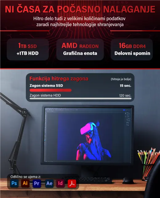 Greed® Ultra V2 PC - namizni / pisarniški računalnik - AMD Ryzen 7 5700G - 4,6 GHZ - 16GB RAM - 1TB SSD + 1TB HDD - DVD+RW - WLAN - Win11 Pro