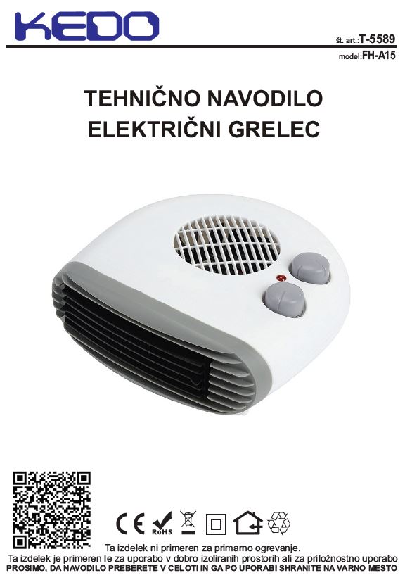 Grelec električni, kalorifer KEDO FH-A15, 2000W, ležeči, belo-siv