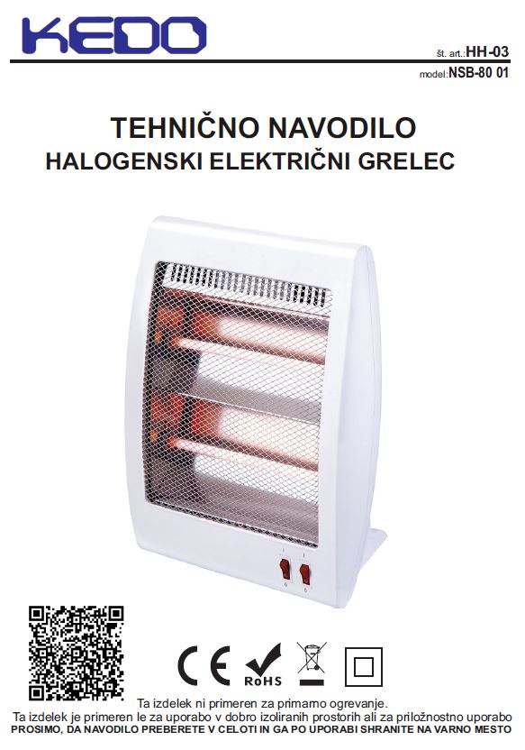 Grelec halogenski stoječ KEDO NSB-80, 800W, varnostno stikalo