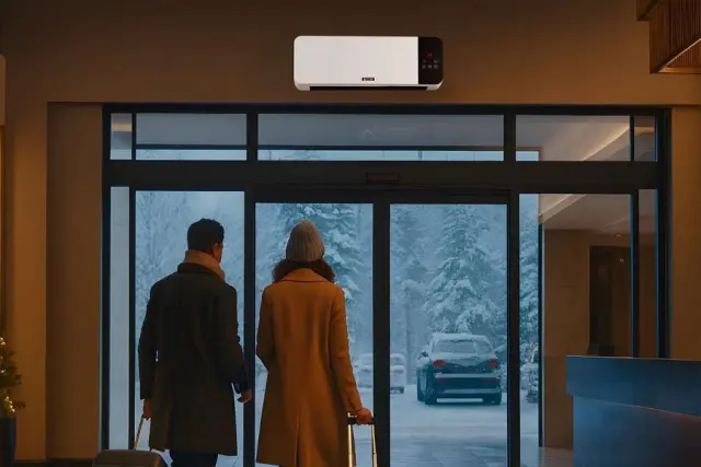 - Časovnik – 8-urni časovnik : Omogoča programiranje časa delovanja zračne zavese. To omogoča, da se naprava samodejno vklopi/izklopi ob določenem času.