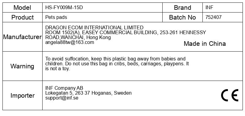 Da se izognete zadušitvi, hranite to plastično vrečko stran od dojenčkov in otrok. Te vrečke ne uporabljajte v zibelkah, posteljah, vozičkih, stajicah. To ni igrača.