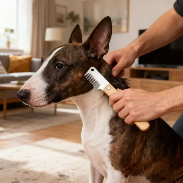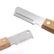 Učinkovito odstranjevanje dlak: Ta glavnik za nego psov je posebej zasnovan za učinkovito odstranjevanje ohlapnih, mrtvih dlak iz dlake vašega ljubljenčka, zmanjšuje izpadanje in ohranja vaš dom čistejši. Rezilo iz nerjavečega jekla nežno prime in izvleče neželeno dlako, ne da bi pri tem povzročalo nelagodje vašemu psu. Idealen za pasme, kot so terierji in šnavcerji, to orodje pomaga ohranjati zdrav in urejen videz. Redna uporaba tega glavnika lahko prepreči tudi vozlanje in zapletanje, kar spodbuja boljše zdravje kože vašega kosmatinca. To je nepogrešljiv pripomoček za vsakega lastnika hišnih ljubljenčkov, ki želi obvladovati izpadanje dlak in poskrbeti, da bo njegov pes videti kar najbolje.