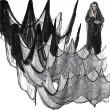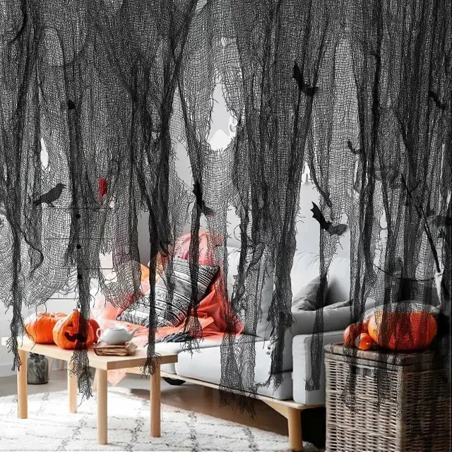 Grozljiva dekoracija za zabavo za noč čarovnic, hiše s straši, vrata na prostem, okraski, črna grozljiva tkanina, strašna gaza, gotski rekviziti
