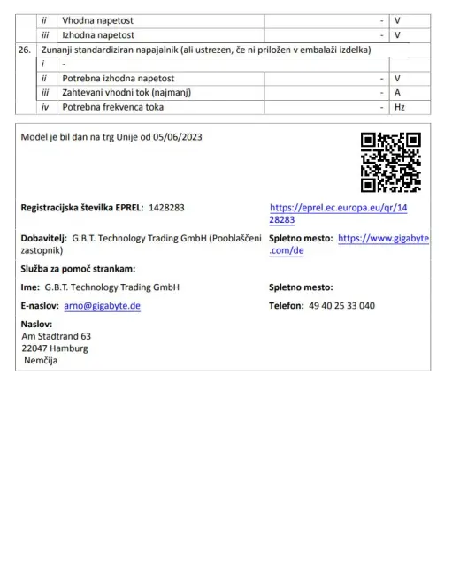 Podatki o proizvajalcu vključujejo informacije (naziv, naslov, državo in elektronski naslov) povezane s proizvajalcem izdelka.