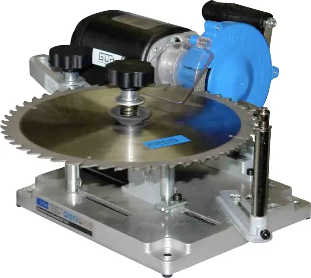Naprava za ostrenje žaginega lista GSS 400Priključek / frekvenca: 230 V ~ 50 HzVrsta / razred zaščite: IP 20 / IInajvečja moč motorja: 110 W.Število vrtljajev v prostem teku: 5300 min-1Ø brusno kolo / izvrtina: 100 mm / 10 mmNastavitveno kotno brušenje: 2 x 25 °Nastavitveni kot podporne mize: spremenljivPriključni kabel: 1\,5 m / H05 VV-FIndikacija ravni hrupa: LWA 103 dBNeto / bruto teža: 5\,2 kg / 6 kgMere D x Š x V: 290 x 280 x 235 mmNaprava za ostrenje žaginih listov za ostrenje listov žage HM in CV s premerom 90-400 mm.Oprema: Diamantno brusno kolo 100 mm\, CV brusilno kolo 100 mm\, orodje.Področja uporabe: Za ostrenje vseh običajnih listov žage na ročnih krožnih žagah\, krožnih namiznih žagah itd.Besedilo je strojno prevedeno.