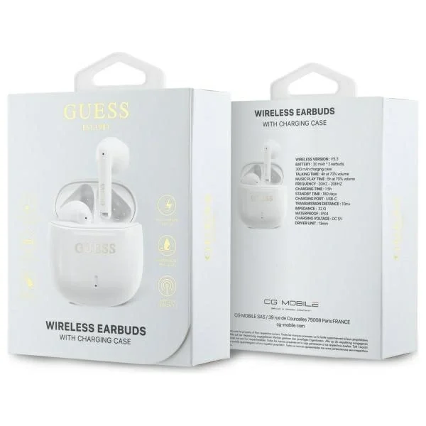GUESS BLUETOOTH TWS SLUŠALKE ZA TELEFON S PRIKLJUČNO POSTAJO, BELE