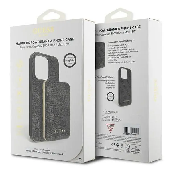GUESS CASE 4G KOVINSKI OVITEK LOGO ZA IPHONE 14 PRO MAX + POWERBANK 5000MAH