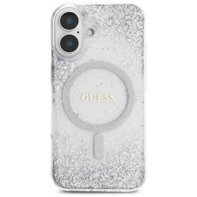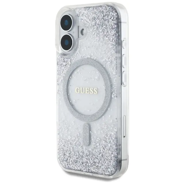 GUESS CASE RESIN BOTTOM GLITTER ZA IPHONE 16 ZA MAGSAFE LUKSUZNO ZAŠČITO