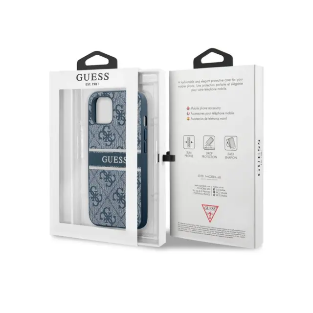 Guess, Eleganten zadnji pokrov za iPhone 13 z vzorcem 4G Stripe, Modra