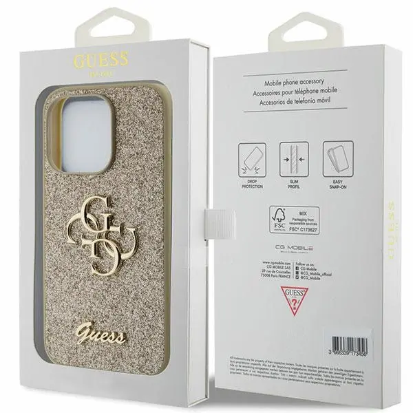 GUESS GUHCP15XHG4SGD IPHONE 15 PRO MAX 6.7 ZLATO/ZLATO TRDO OHIŠJE GLITTER SCRIPT BIG 4G