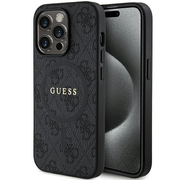 GUESS GUHMP14LG4GFRK IPHONE 14 PRO 6.1 CZARNY/BLACK HARDCASE 4G COLLECTION LEATHER METAL LOGO MAGSAFE