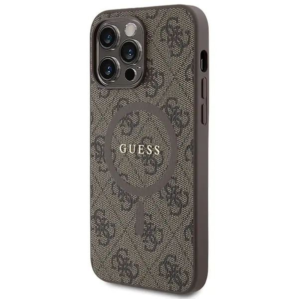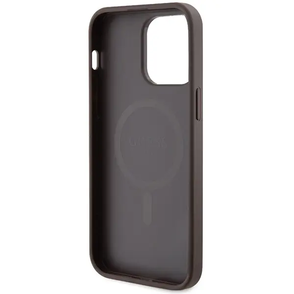 GUESS GUHMP14LG4GFRW IPHONE 14 PRO 6.1 BRĄZOWY/BROWN HARDCASE 4G COLLECTION LEATHER METAL LOGO MAGSAFE