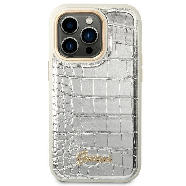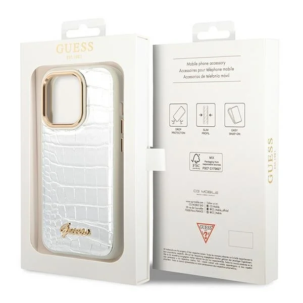 GUESS HARDCASE CROCO COLLECTION SILVER CASE ZA IPHONE 14 PRO 6.1