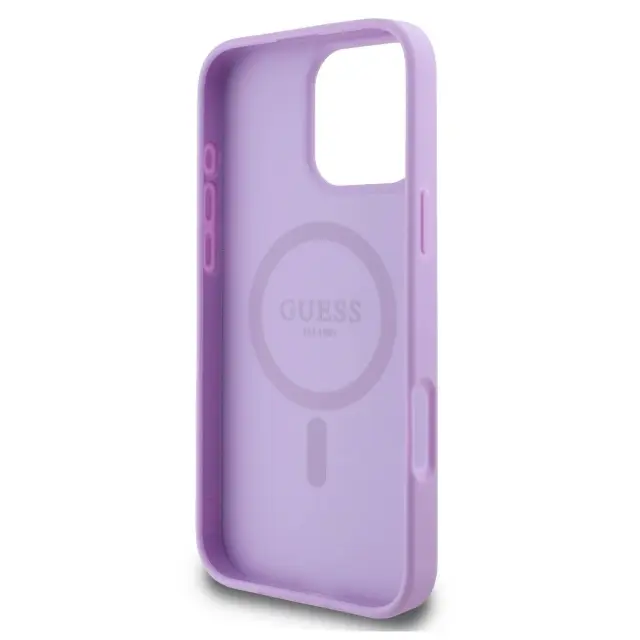 Guess, Hrbtni ovitek za iPhone 16 Pro z zrnato teksturo MagSafe, Vijoli?na