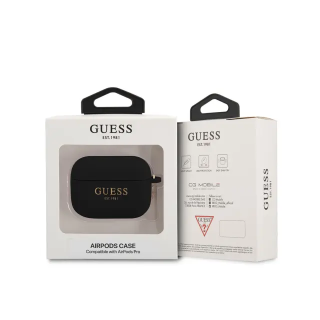 Guess, Ohišje za AirPods Pro 4G Edition Silikonski obesek z obeskom, Črna