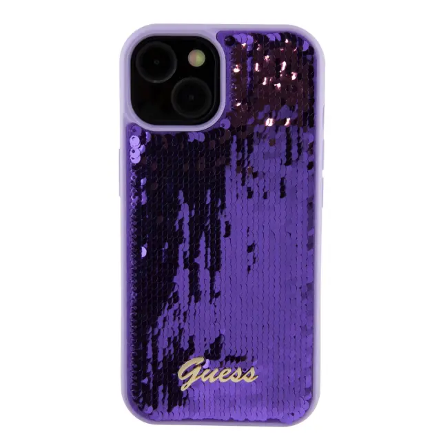 Guess, Ohišje za iPhone 15 Plus proti udarcem Soft Sequins pattern, Vijolična