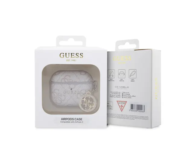 Guess, Ohišje za slušalke Airpods za Airpods 3 4G Script z obeskom, Antikno roza