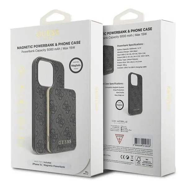 GUESS OVITEK 4G KOVINSKI LOGO ZA IPHONE 15 + POWERBANK 5000MAH ZA MAGSAFE ČRNA