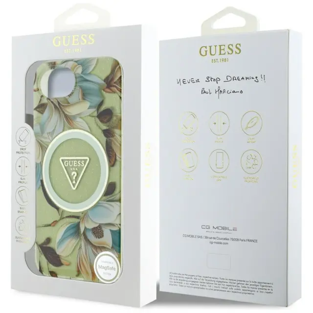 GUESS OVITEK IML KOVINSKI Z BLEŠČICAMI ZA IPHONE 16E ZA MAGSAFE ROŽE TRIKOTNIK