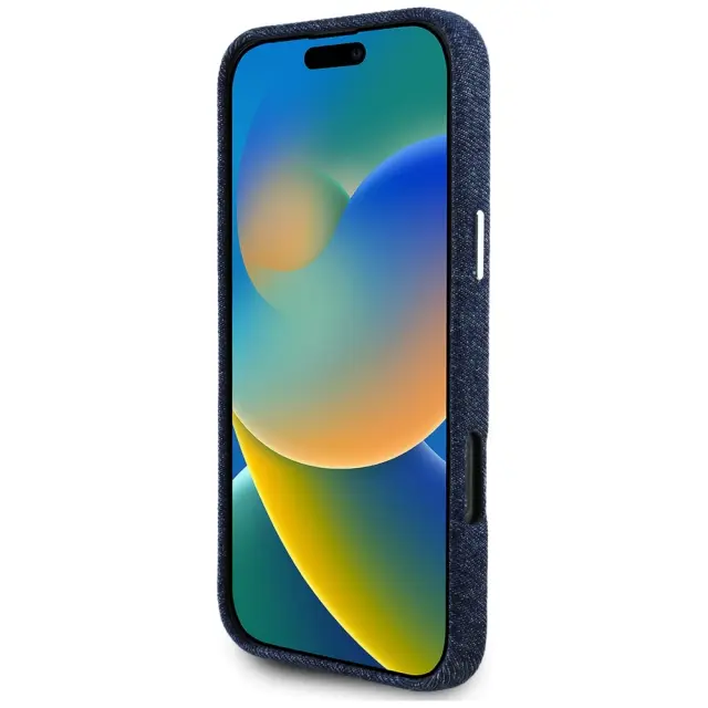 GUESS TPU OVITEK ZA IPHONE 16 PRO ZA MAGSAFE DENIM TRIKOTNI LOGO DURABLE